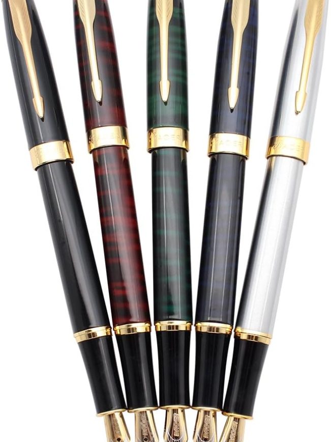 - Package: 5 pieces fountain pen with different colors as photos (Black, Red, Green, Blue, Silver), comes with pen pouches